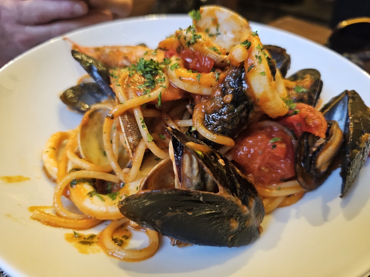 A true gem! My husband and I just happened to walk around the corner from our hotel and Piccolo Vicolo looked so inviting. We were warmly greeted and sat outside on their lovely patio area. Not only was the food wonderful, but the staff were all so welcoming, helpful, and really made us feel they wanted us to enjoy our experience. And we did! They took the time to explain and allow us to taste a couple wine options to best fit our preference and even gave us a fun little dessert bonus with a show! I cannot recommend them enough!