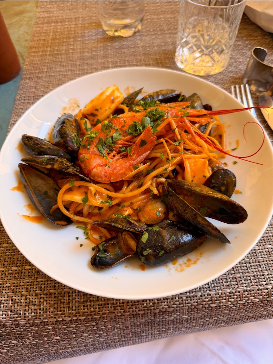 My husband and I popped into here for lunch and had an incredible meal. We sat outside but there was ample indoor seating. We started with the fried prawns and a bottle of the Pinot Grigio, which were enough to stop by here alone. I had the carbonara and my husband had the pesto pasta and they were both incredible. We finished with the biscuits and sweet wine, and it was a perfect end to a lovely lunch. The service was attentive and knowledgeable, offering their suggestions and recommendations. We would definitely recommend anyone to stop in!