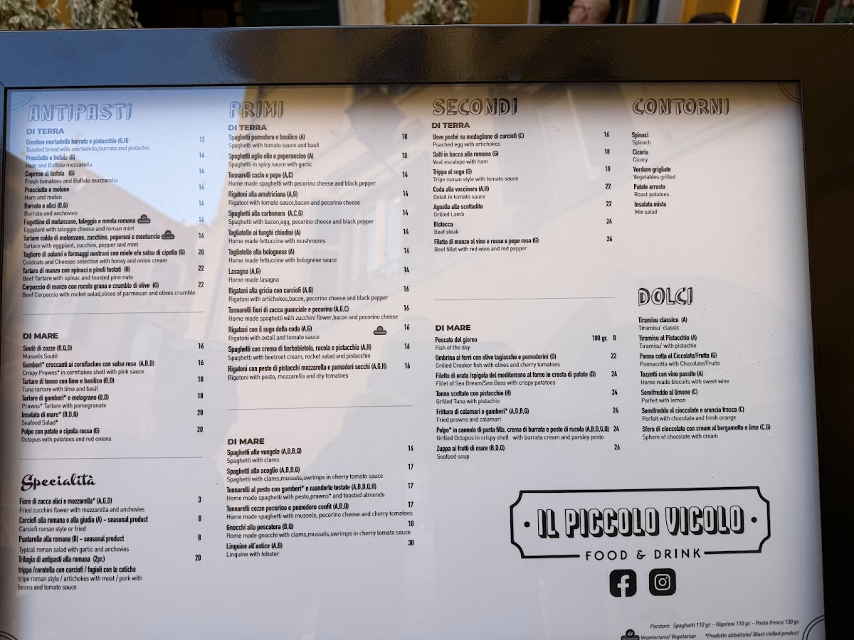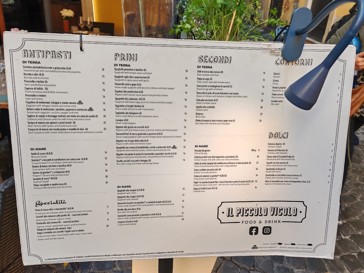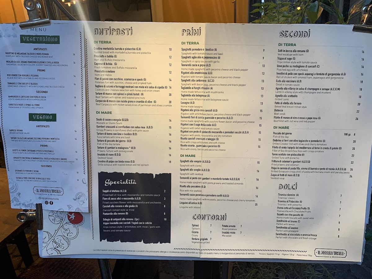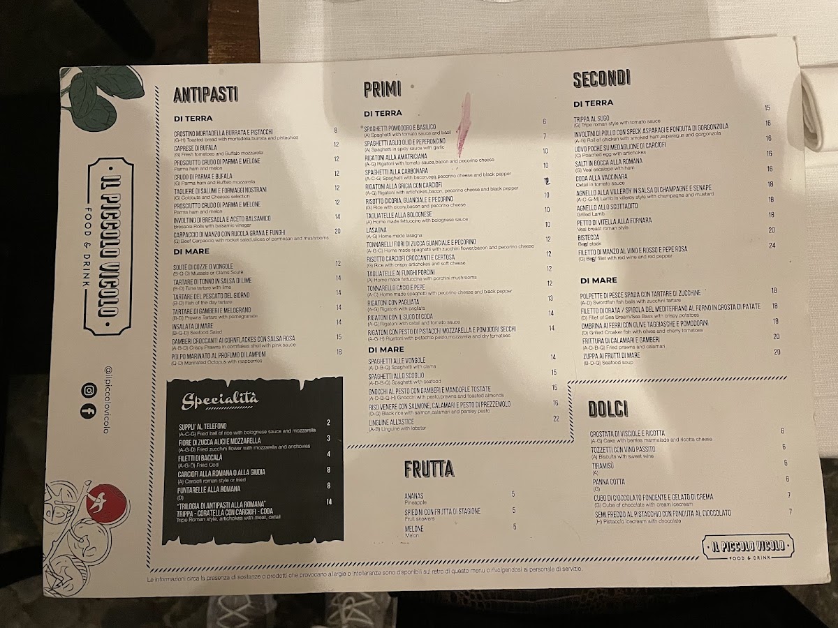Piccolo Vicolo Menu